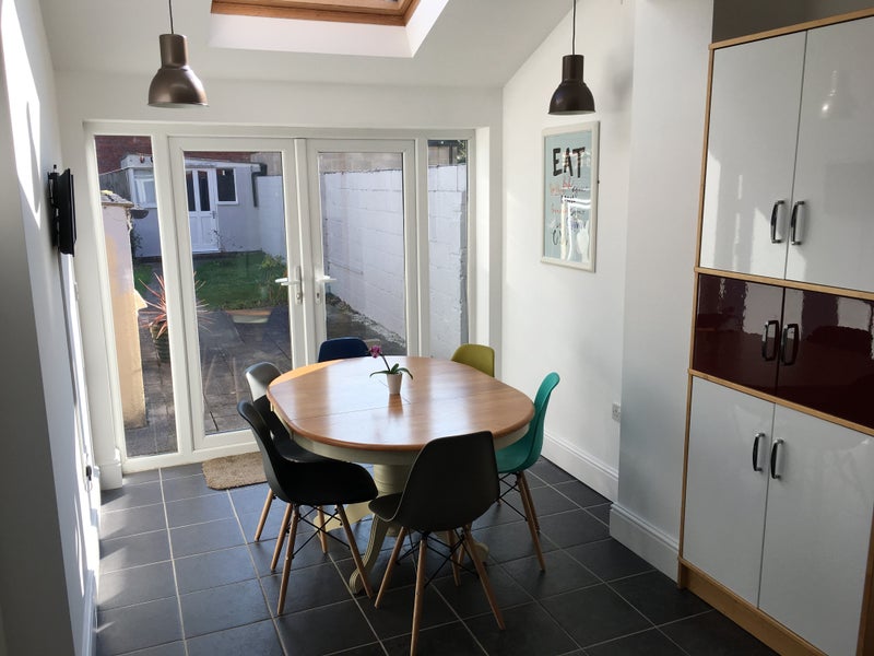Use of large fully equipped kitchen-diner with island unit, dishwasher, washing machine and dryer.