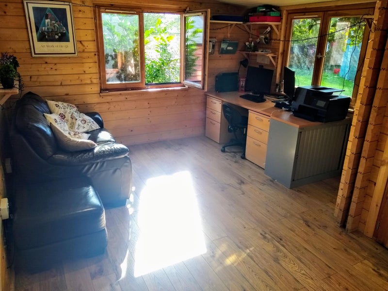 Stunning kitchen diner / community space with bifold doors opening on to the garden - perfect for cooking and socialising. Garden office / cabin which is fully equipped with seating area, TV and heating, usable throughout the year. Spacious patio area with garden table and seating. Heated double garage with pool table.
