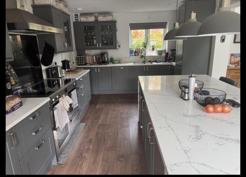 Kitchen includes double range cooker, ninja air fryer, microwave and American fridge freezer.