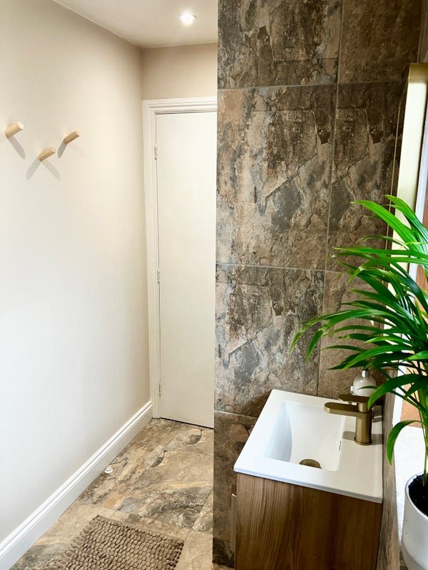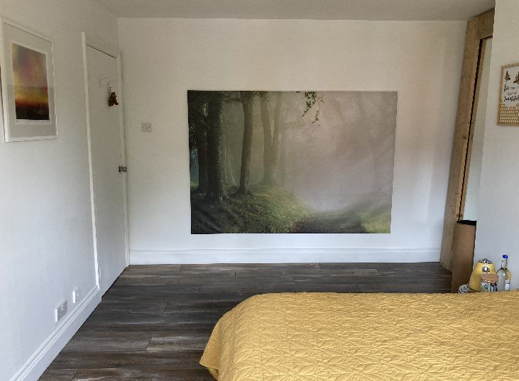 Safe and friendly family home with a large double room and ensuite. Sturdy oak king sized bed, chair and desk provided and rails for clothes. The room is fairly priced including bills as the shower is not a power shower but the bathroom is newly refurbished. No cats or birds, only one breed of dog considered as we already have one.