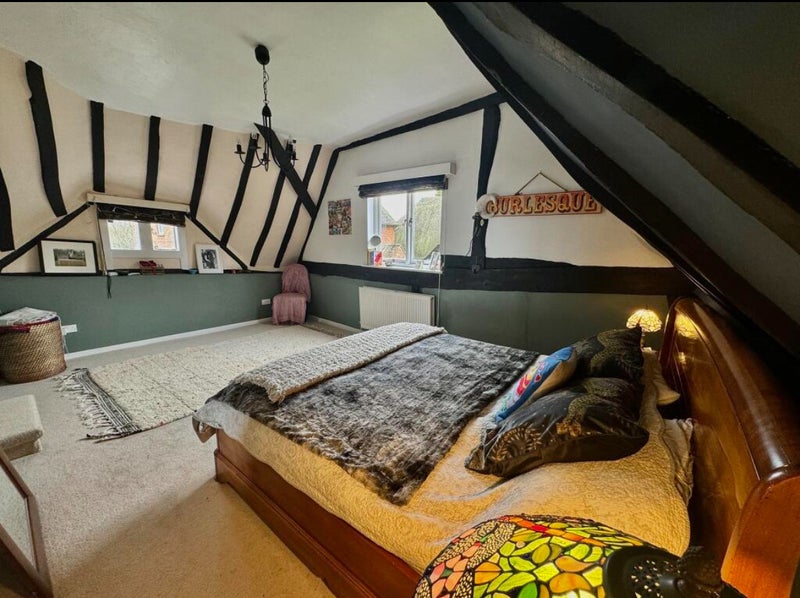 Very large double room (has a super king in at the moment but could swap for a double if preferred) plenty of space to put a sofa and a desk in if you wanted. Use of wardrobe with hanging and drawers. The room is upstairs and a long way away from the other room occupied by a lodger so very private.