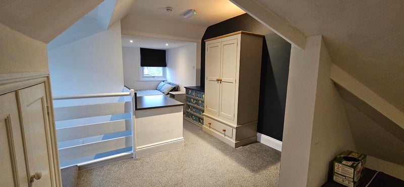 🛏 Top Floor Suite-Style Room – Separate Zones, Alcove Bedroom + Storage Room