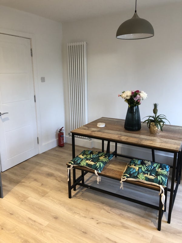 Shared bathroom and kitchen. Lodger has their own fridge/freezer. Vegetarian household so prefer no meat in the kitchen.