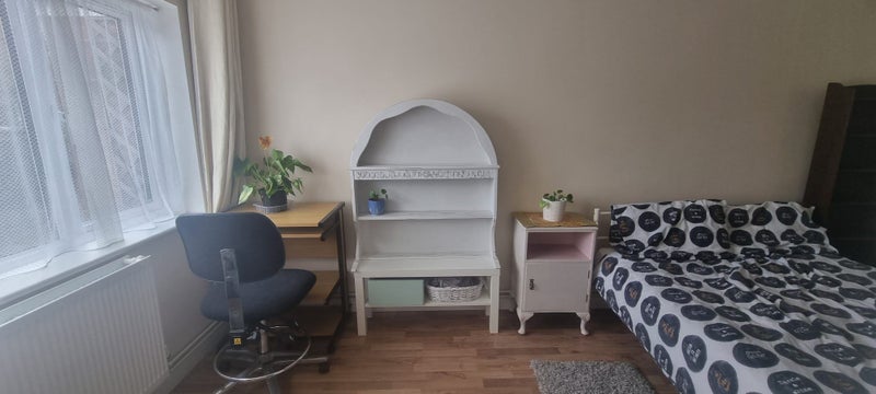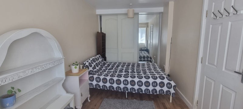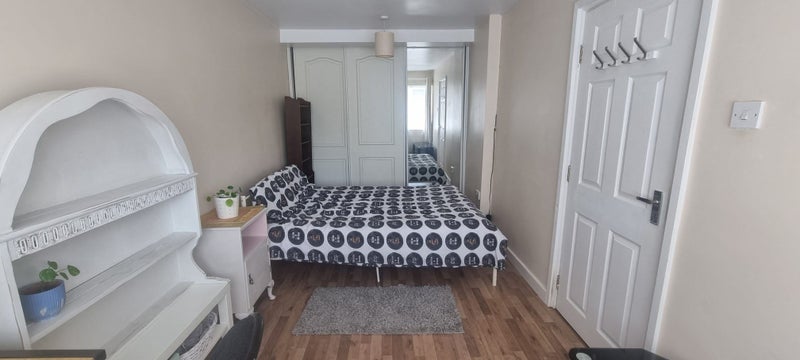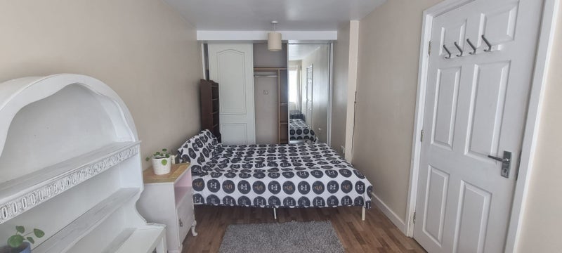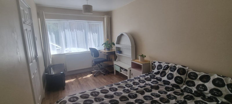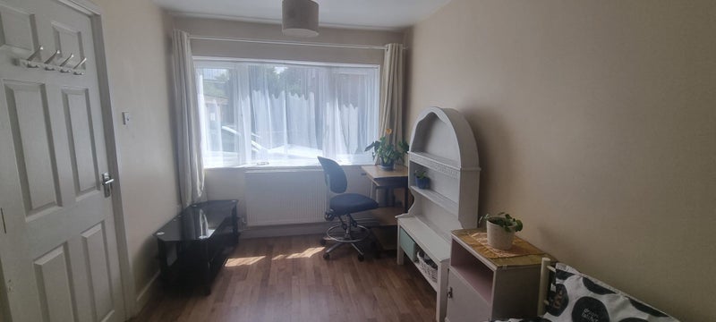 Room is downstairs, next to kitchen. Bathroom on first floor. I am renting room only. Shared kitchen, bathroom and garden.