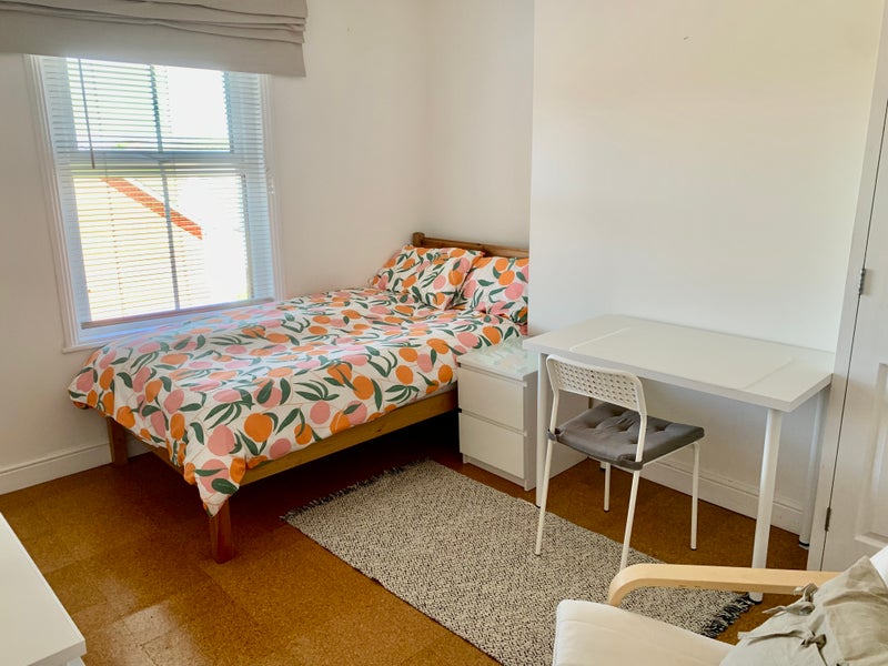 Completely refurbished and recently decorated, the room is quiet and located at the rear of the house. Fully furnished to include a double bed with quality memory foam mattress, built in wardrobe, large chest drawers, and a desk. The room also benefits from a vanity washbasin.