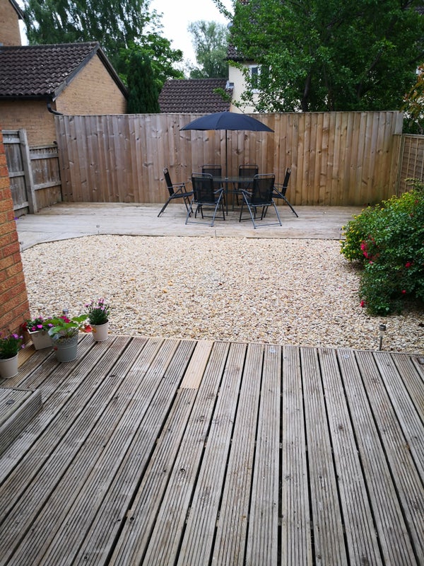 - Spacious and sunny garden/patio/deck with furniture