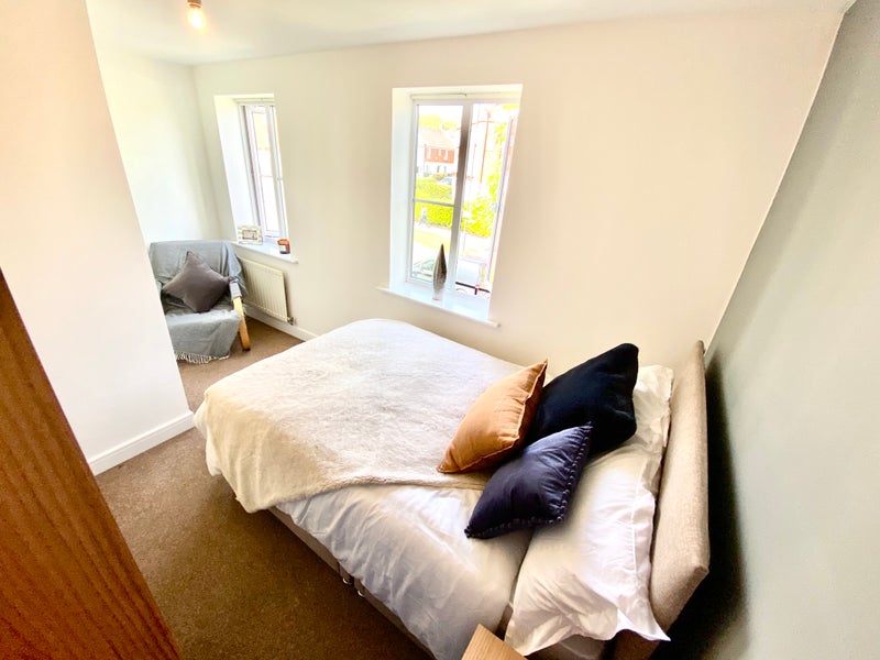 🏠 A nice double bedroom on the first floor. Comfortable for those on a budget. The room has a double bed, a mattress, a double door wardrobe, and a bedside table. The room shares a bathroom on the first floor with one other person. There is also free parking available. It's a bright and very spacious room in part of Swindon. This is not an en-suite bedroom.