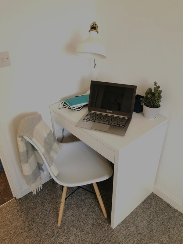 It's a double ensuite room on the ground floor of the property and is fully furnished with double-bed, large, mirrored wardrobe, bedside table and desk/chair/wi-fi for productive home working. All our rooms have super-fast wi-fi, hard-wired Ethernet sockets, USB charger points and TV socket.
