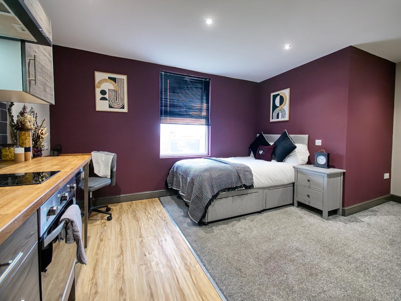 🛏️ Dive into comfort in our comfortable double room that is more than just a place to sleep. It boasts an en-suite to provide you with utmost privacy, a built-in desk to ensure your work-from-home days are efficient, and comes fully furnished for a hassle-free move. It also comes with a generous kitchenette complete with cooking facilities and fridge.