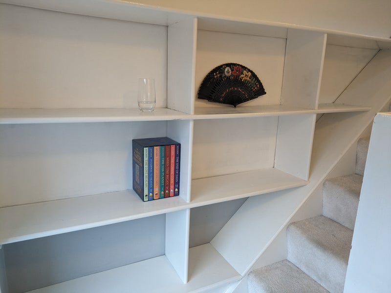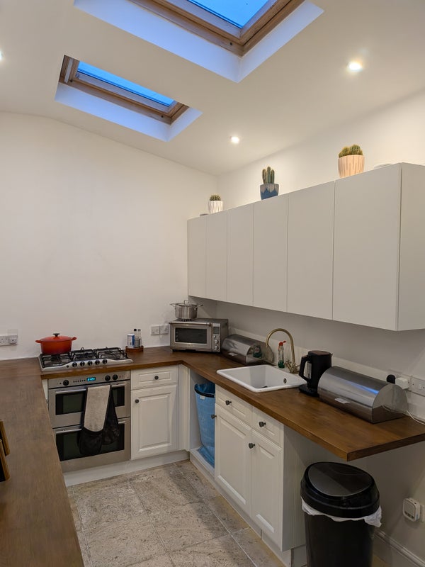 3 bed Victorian house with large loft conversion which has it's own door leading to stairs with shelves. Simba mattress and bed.
