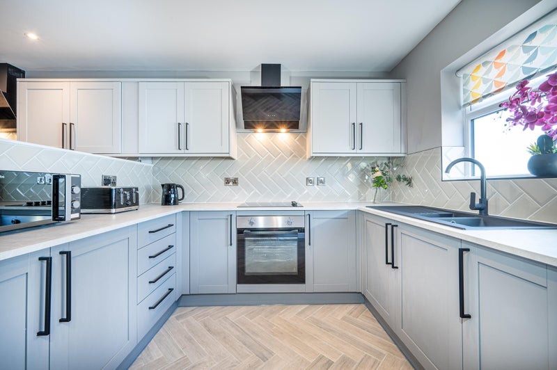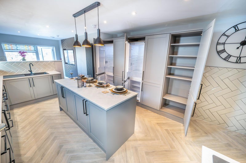 We have even included a show-home like Island (equipped with even more storage inside) as well as feature lights to add a modern twist. The Kitchen has gorgeous Parquet Wood flooring and Grey and Black accents throughout, making it not only pretty but easy to maintain too.