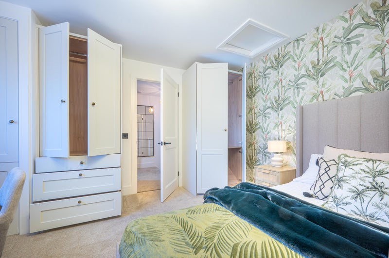 Finally, the master bedroom is so spacious, with built in cream wood wardrobes with railings and soft close drawers you have loads of space to keep organised!
