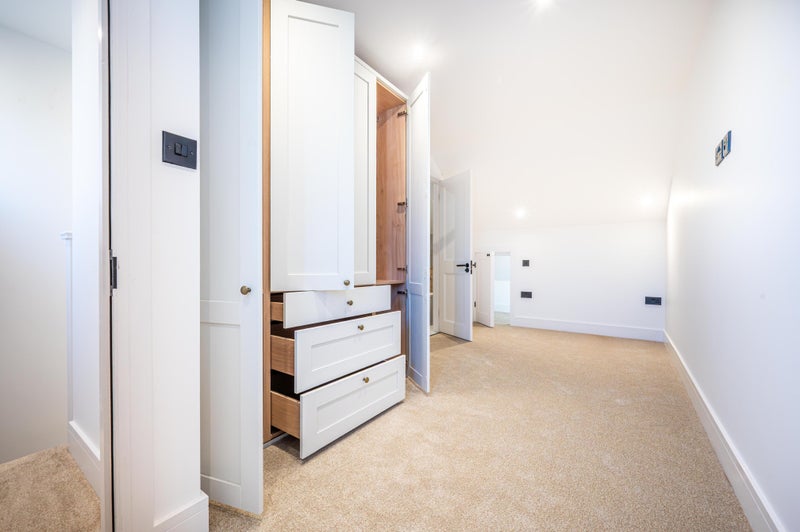 All the wardrobes of the house have been purpose made and bespoke to each room to really maximise on that space, with 2 soft close drawers, railings above and double railings to the left hand side as you look at it too, we know you will have more than enough storage!