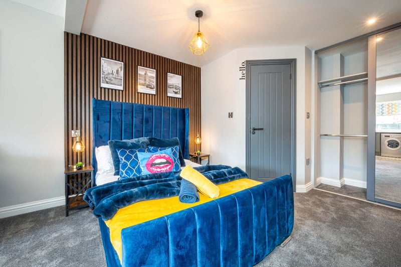 ⭐️ All Units come with our signature Double Midnight Navy upholstered bed with memory foam mattress ensuring you have the best night’s sleep