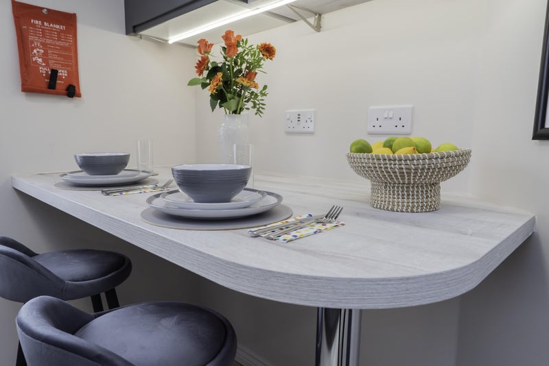 Each super large ensuite room has been thoughtfully designed with luxury furniture, super fast broadband and a calming colour scheme.