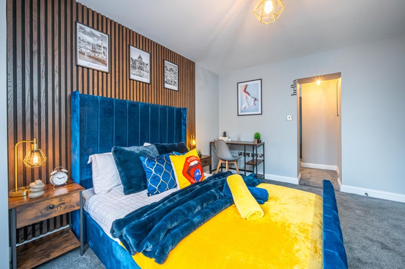⭐️ All Units come with our signature Double Midnight Navy upholstered bed with memory foam mattress ensuring you have the best night’s sleep