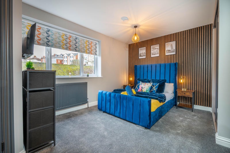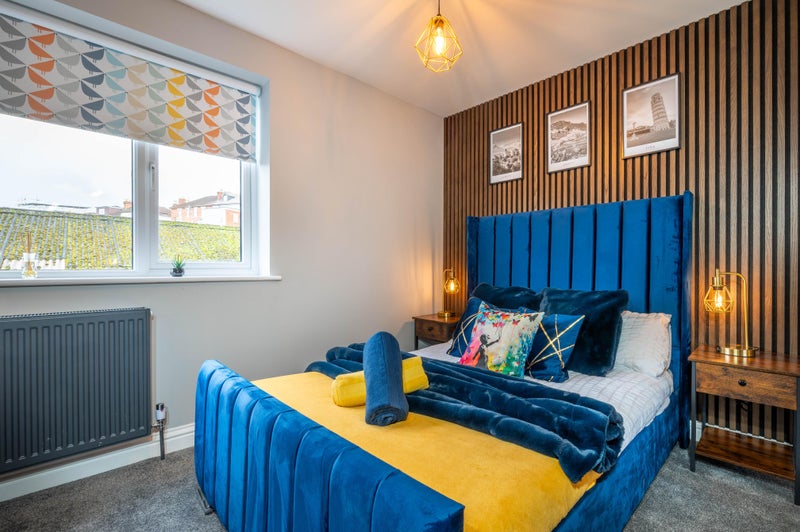⭐️ All Units come with our signature Double Midnight Navy upholstered bed with memory foam mattress ensuring you have the best night’s sleep