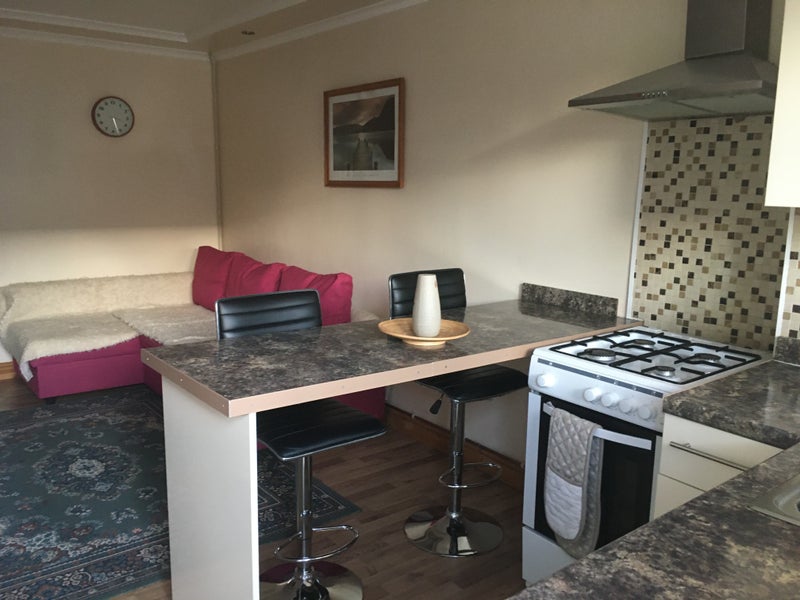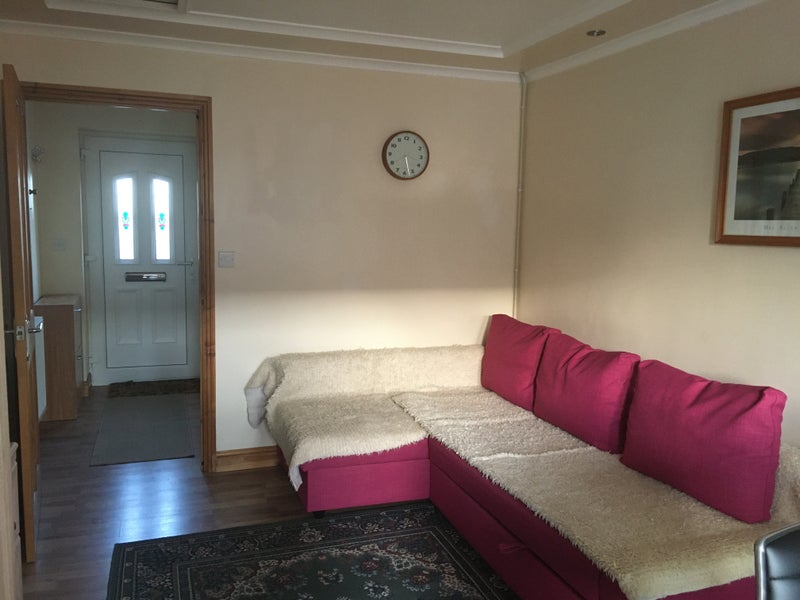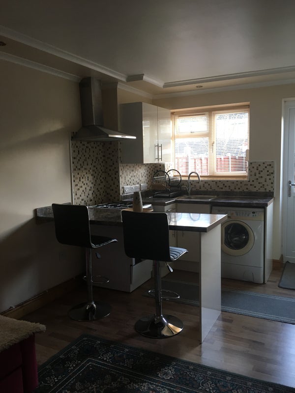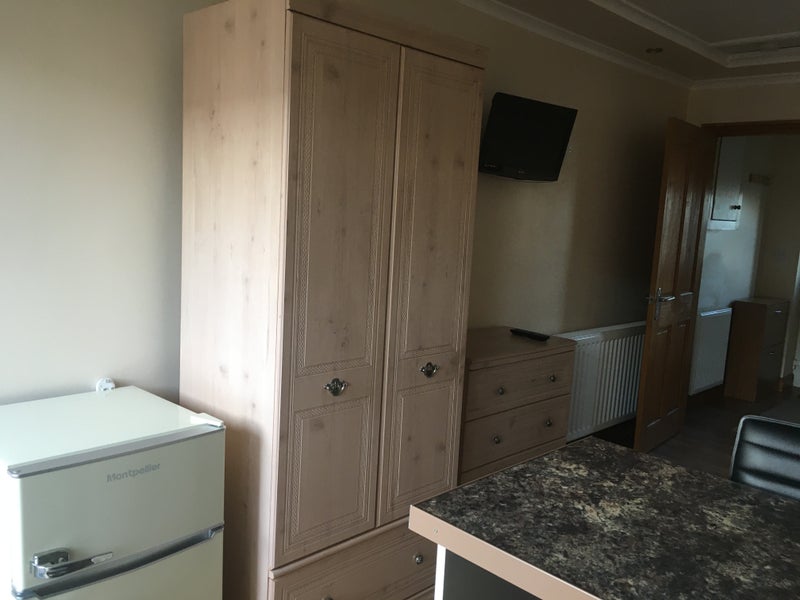Beautiful, very clean annexe/studio. Self contained but attached to my house. It is suitable for a single person or a couple who likes to have a quiet place on their own and away from noisy housemates. The accommodation comprises with entrance hall, bathroom with shower and double bedroom with open kitchen. The kitchen is well equipped with gas cooker and electric fan, fridge and washing and dryer machine. There is a shared back garden and parking at the front of the house. It is fully furnished-double size sofa bed ,wardrobe, chest of drawers, TV and WiFi. The studio is near a local shop and bus stop .The accommodation is in walking distance to B&Q; McDonald’s and White Horse Industrial Park. We are looking for professional people who will appreciate the property and will look after it. We will require month deposit and rent paid one month in advance. Please note that the rent above is for one person and that for a couple it would be slightly different -call me for information. This will be available after 15th Octomber but viewers are welcome now.