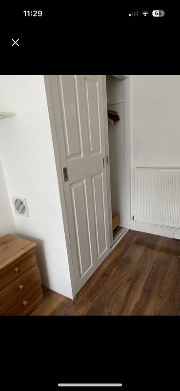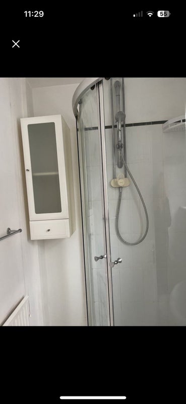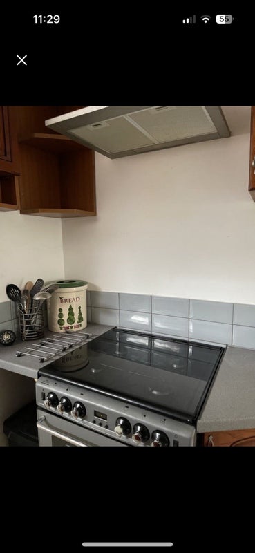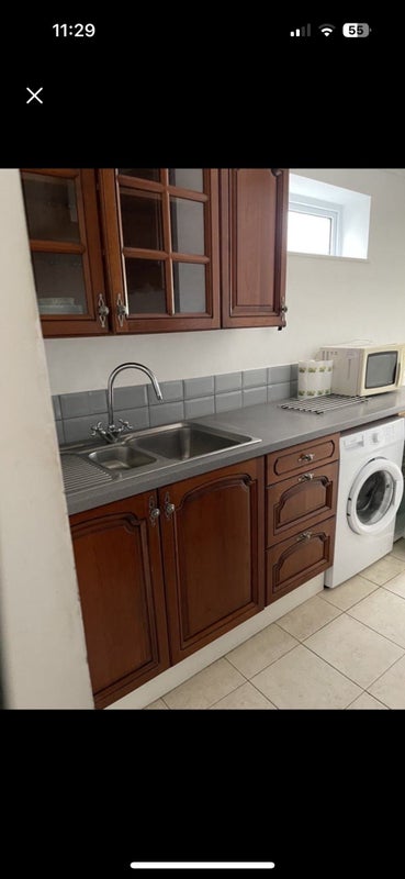 Fitted kitchen with gas cooker fridge washing machine and microwave. Plenty of storage. Since photos the cupboards are now grey. Double bed sofa and cupboards. Fitted wardrobe.