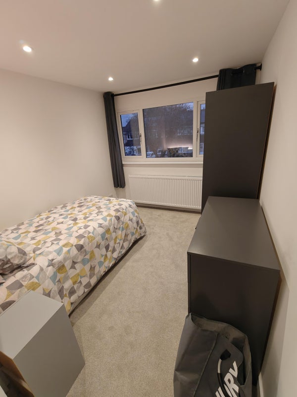 Large Single fully furnished room in detached 4 bed, newly refurbished room, shower room and kitchen utility, dinning and living room. Off street parking on drive and EV charging if needed. All bills included, Peaceful relaxed household for working professionals.2Gbps Youfibre wifi 7 connection. Large Garden and Garage storage.