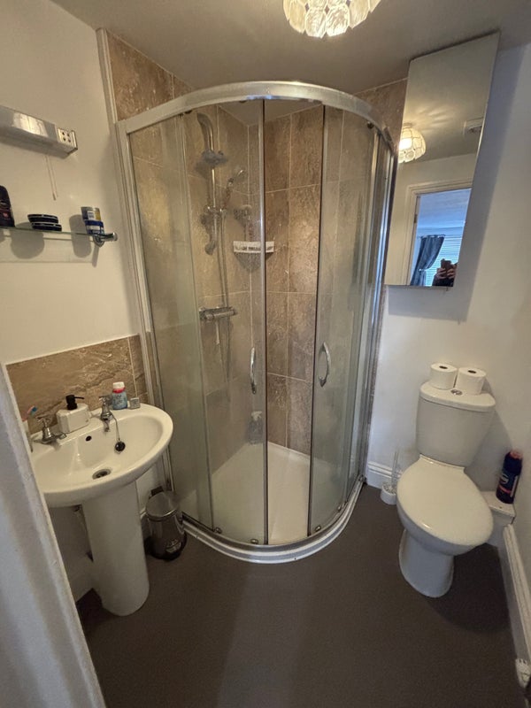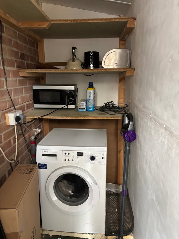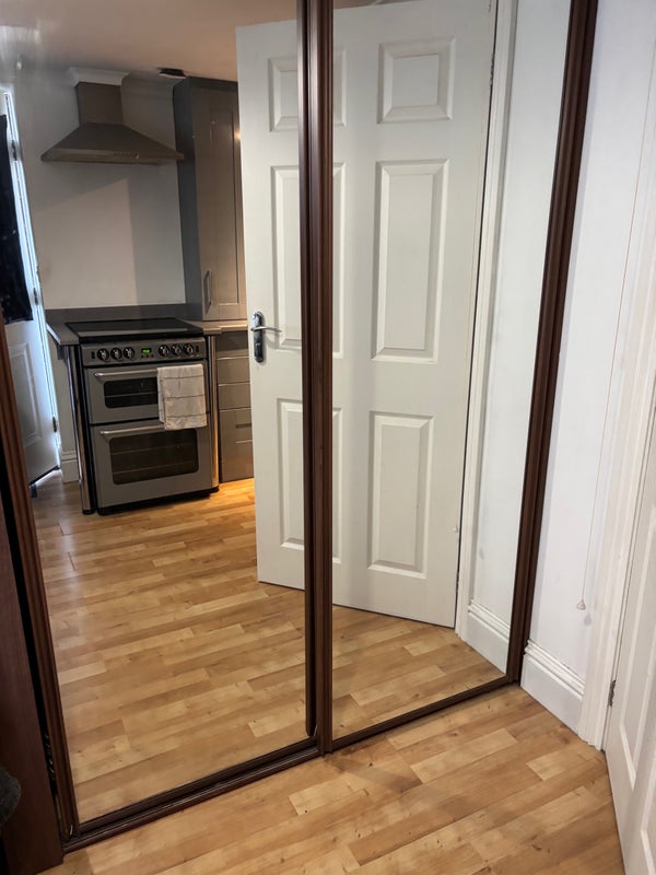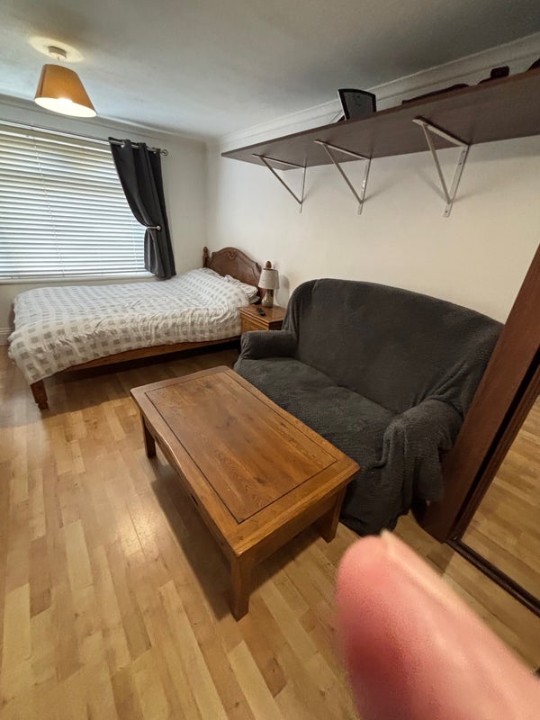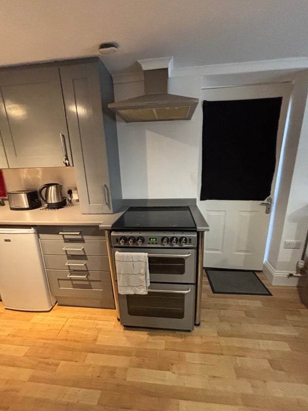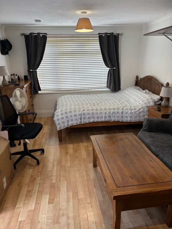 Own entrance at end of a quiet culdesac. BA14 7BU. Furnished with double bed, Freeview TV. En-suite shower and toilet. Kitchen area with fridge, microwave and gas cooker. Various pots, pans and cutlery (if required) kettle. Fitted double mirrored wardrobe. 2 seater sofa and coffee table. Chest of drawers and bedside cabinet. Curtains. WIFI