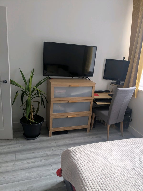 Modern, fully furnished one-bedroom apartment with a large living area and a beautiful kitchenette. All bills included in the price. I can also consider renting just the room for £850. Quiet neighborhood, walk distance to McDonald's and KFC B&M.