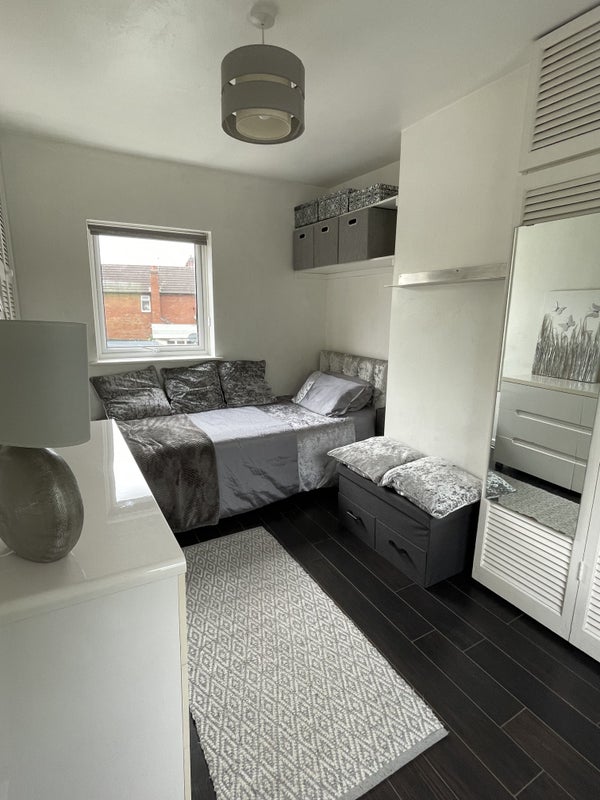 Spacious, fully furnished single room with loads of storage. Central location. Close to all amenities. Walking distance 2-3. mins town centre. Train station 3-5 mins by car. Convenient M5 & M42.