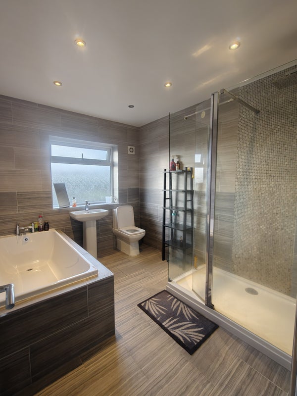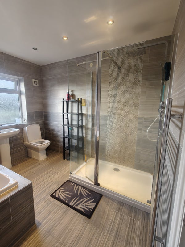 The house has a large shared kitchen, which you would share with the two live-in landlords and one other tenant. The available room shares a large bathroom with the other tenant, while the landlords have a separate shower room. There is also a downstairs toilet next to the kitchen for additional convenience.
