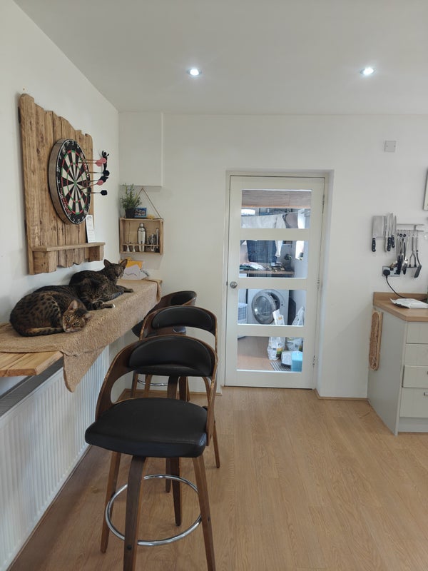We both work from home most weekdays and spend our evenings looking after the cats, using the gym room, playing pool or table tennis, or relaxing with TV or films in the living room. It’s a relaxed, tidy, and friendly household.
