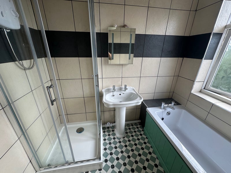 Rooms are on first floor and are large with access to bath/ shower room with separate toilet for sole use of roommates. That is total 2 people, Landlords have their own facility downstairs.