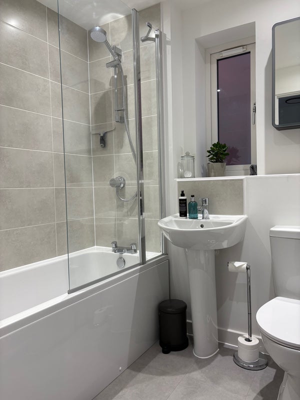 You’ll have one allocated parking space and share a bathroom with a shower-over-bath.