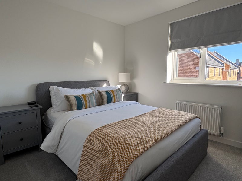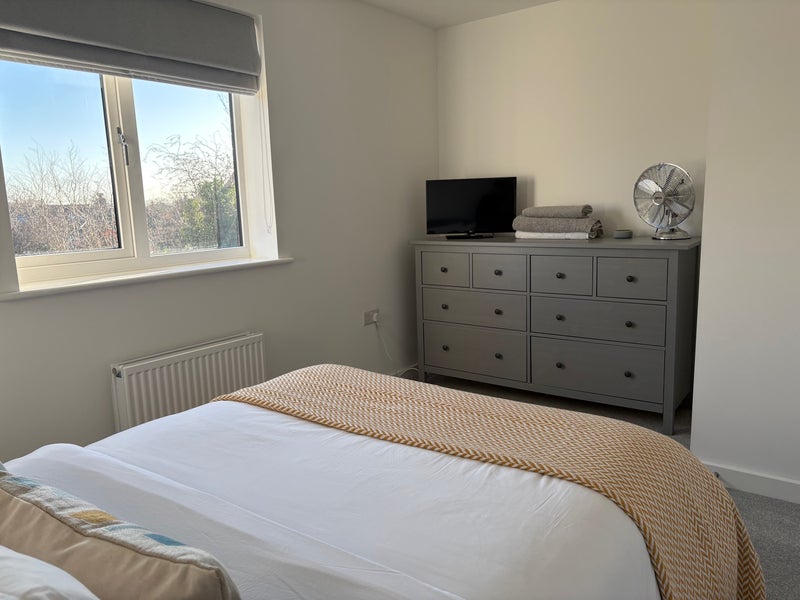 The room comes with a double bed, chest of drawers and bedside storage — bedding can be provided if needed.