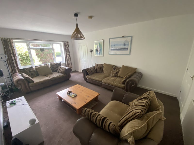 Open plan layout adjoining the kitchen. The dining room has a large extendable oak table (seating up to 8). Large patio sliding doors lead onto the rear garden.