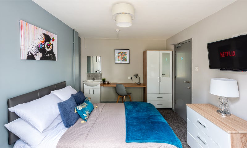The bedrooms are fully furnished with double beds, bedside tables, wardrobes, fitted desk space and each room has a flat screen, wall mounted TV.