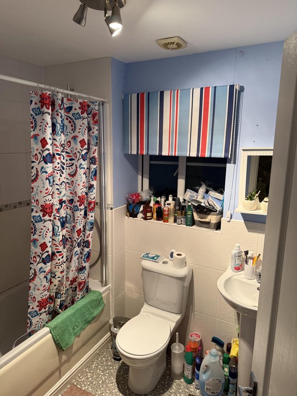 A double room furnished with double bed and wardrobe with your own bathroom with bath shower toilet sink, shared fully furnished kitchen with tv etc and garden, near town and shops close by