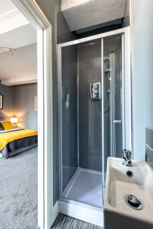 With its own kitchenette comprising of undercounter fridge/freezer, built-in oven and hob, fitted units and sink, the room is furnished with a double bed/mattress and bedside table, wardrobe, chest of drawers and a sofa with coffee table and also benefits from having its own en-suite shower room