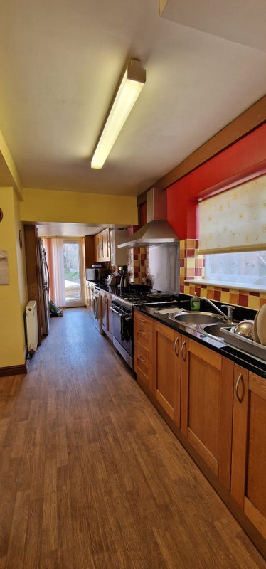 Also included is a big double door fridge freezer in a spacious kitchen with a dining area.