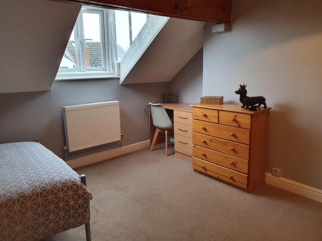 This is a 5 bedroom house-share and the room available is on the second floor at the front of the property. The spacious room has a double bed/mattress, chest of drawers, wardrobe, digital TV point and desk/chair. The downstairs has a communal living room with solid oak floor boards, digital flat screen TV, unlimited Fibre BB, a shared kitchen and utility room, with a lovely patio area at the rear with a quaint little pond and attractive shrubs.